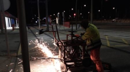 Actividad clásica desarrollada por LASA, consistente en fresado y amolado, así como recarga con y sin calentamiento previo de carril tranviario, para aumentar su vida útil.