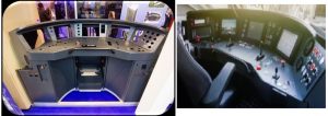 La estructura del pupitre es de aluminio y está equipada con orificios para la instalación de equipos adicionales. El pupitre del conductor puede contener componentes de fibra de vidrio.